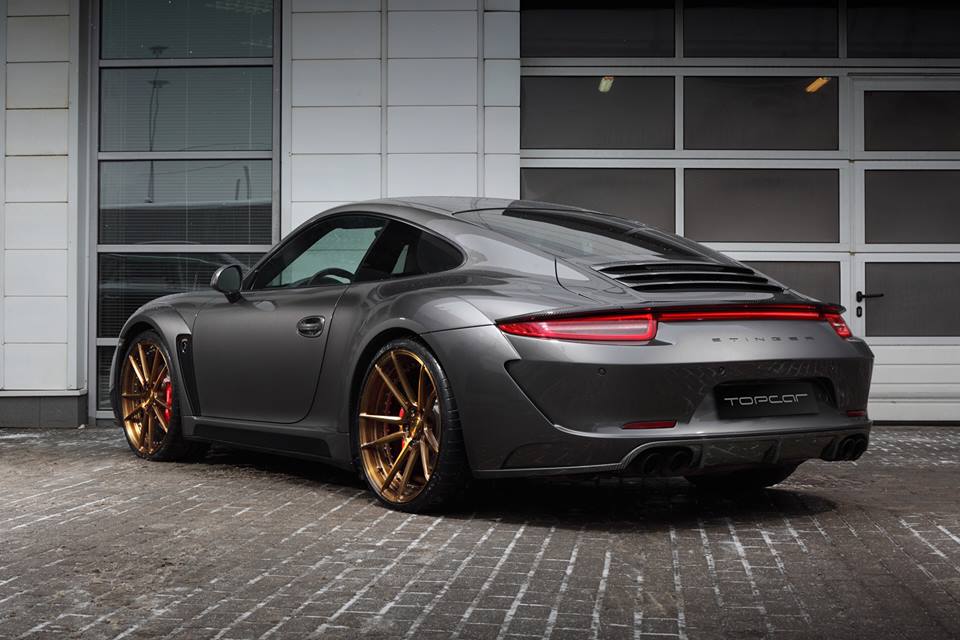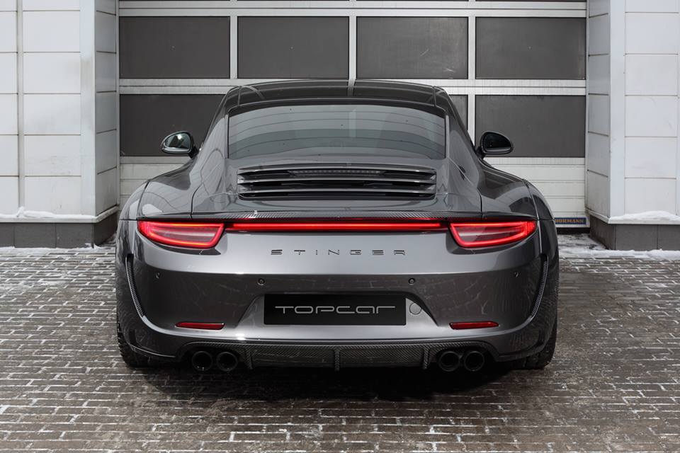 The ingredients of TopCar Porsche 991 Stinger must be familiar to you by now. It includes completely bespoke carbon fiber bumpers, wings, fenders, sills, and quarter panels, as well as custom hood and trunk lid. Flared wheel arches and aero parts are also included. If the carbon kit is too expensive for you (15.2K EUR), you can opt for one without the exotic material (11.4K EUR).