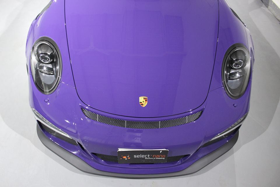 Dubai-based car detailing company – or “Spa for Luxury, Exotic & Classic Cars” as they prefer to be called – Select-Nano has been working lately on an Ultraviolet Porsche 991 GT3 RS which must be the most unique example of this car in the world. That’s because it has some green stuff on it!