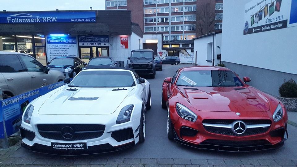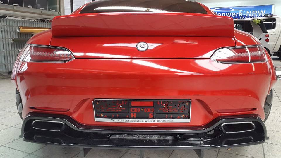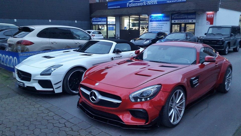 To be honest with you the red wrap Folienwerk-NRW has applied to this car seems a bit pointless since AMG GT does come in a factory red that is very similar to this color. Still, it does good job of showcasing the PD 800 GT styling kit. It looked good in blue, but it’s just freakin’ dope in red.