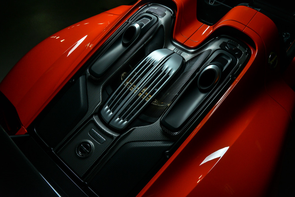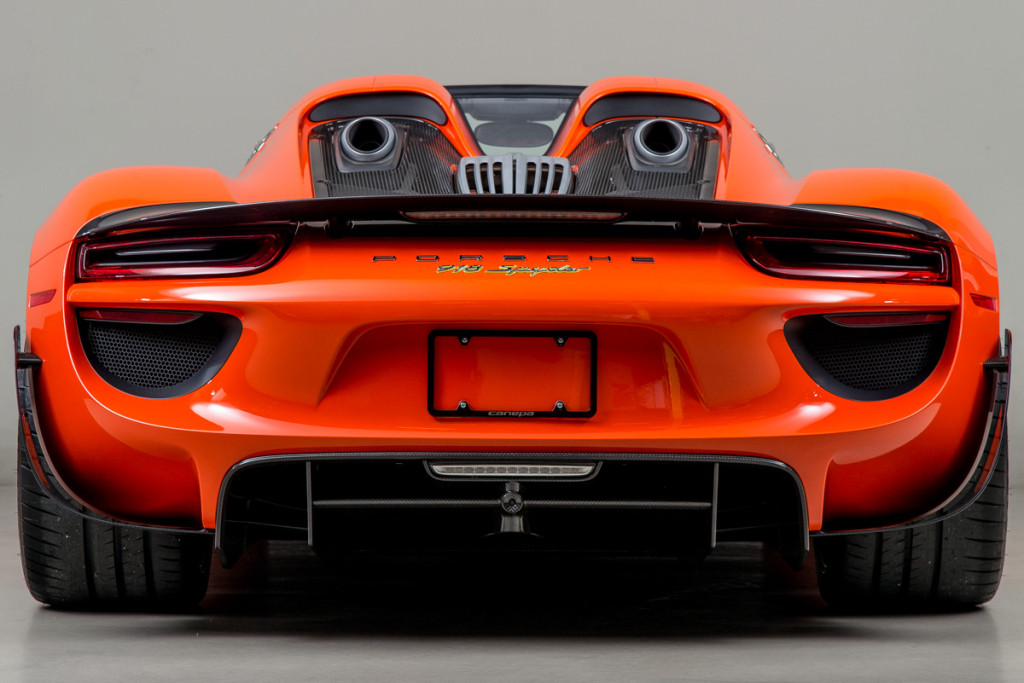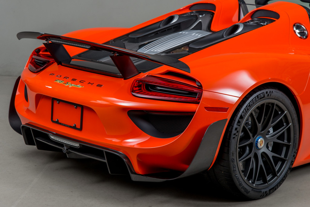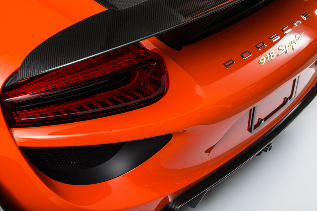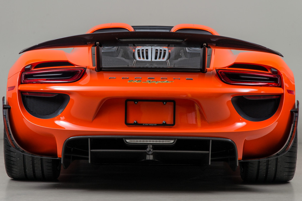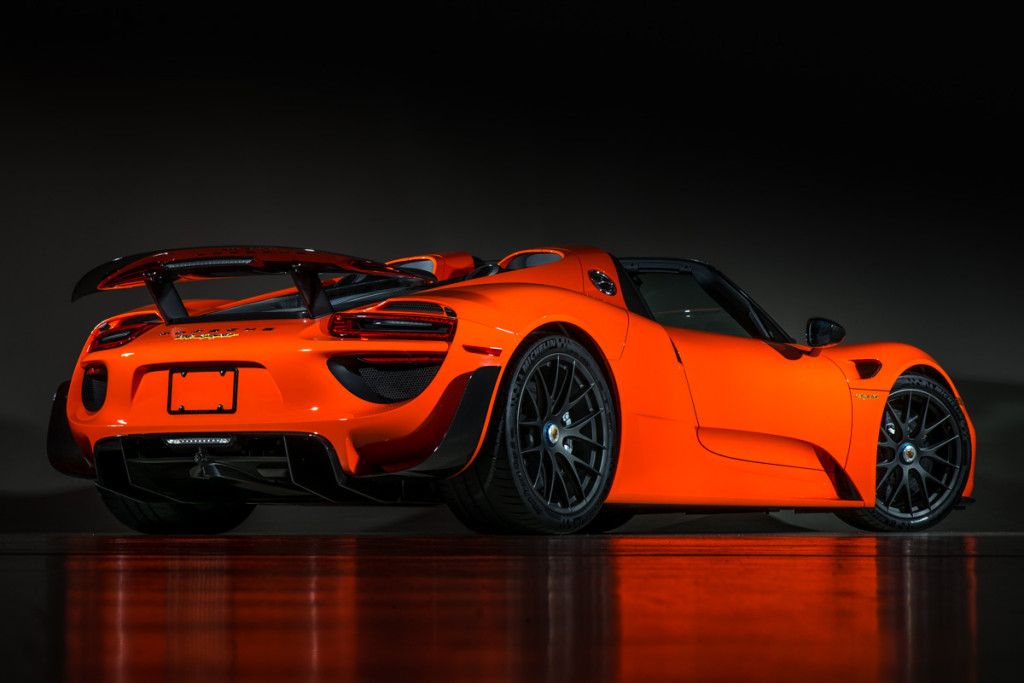 According to Canepa, this Continental Orange Porsche 918 is the only car in this color and specs from the factory, although we suspect now that everyone has seen how great it looks some people are going to have theirs painted or wrapped in this unique shade of orange. As mentioned, the car comes with Weissach Package which includes more pronounced aero parts and those matte black wheels, both of which contribute greatly to the superb looks of the vehicle.