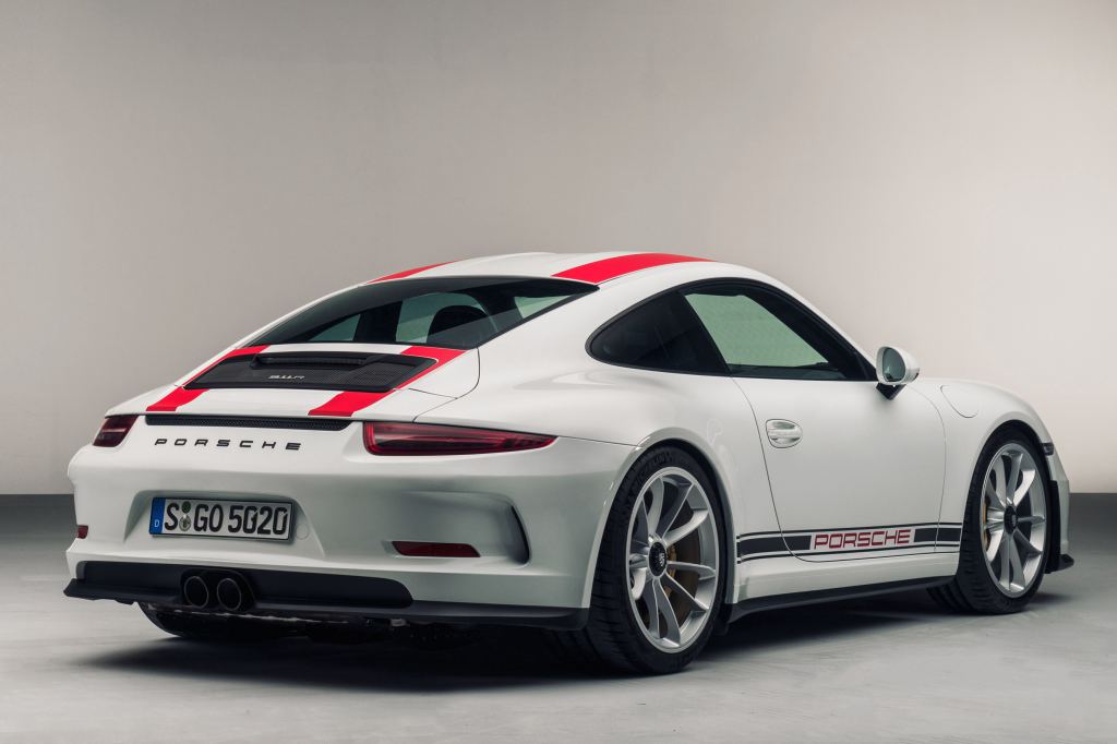 So let’s cut right to the chase: 2017 Porsche 911 R comes with a 500 hp (368 kW) four-litre naturally-aspirated flat-six engine driving the rear wheels via a six-speed manual gearbox. That “stick” is the biggest highlight of this back-to-basics model. A lightweight body and exclusive design elements are among the other notable features.