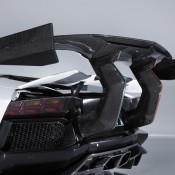 Before you go and check out the photos in the gallery below, let us go quickly over the ingredients of Aimgain Lamborghini Aventador styling package and tell you about the cost. So the treatment includes a new front bumper complete with splitter and spoiler and stuff, side under spoiler or aero blades, rear diffuser, and a massive rear wing which they actually call “stealth GT wing”. Based on the current exchange rates, the package costs $29,000 if made from carbon fiber, and $19,000 if ordered in FRP plastic. You can also order parts individually, but sir suspension and wheels showcased here are optional extras.