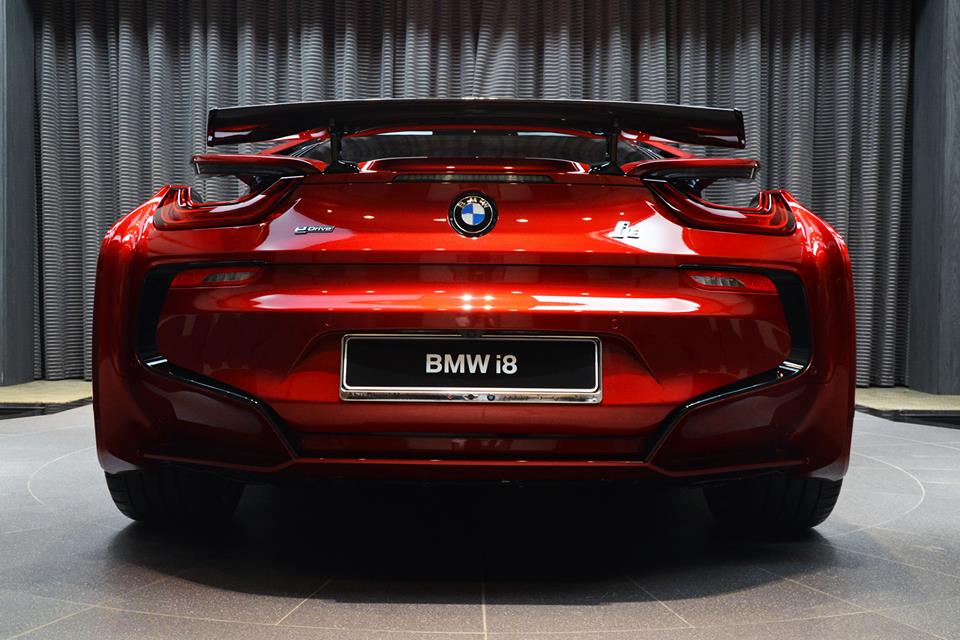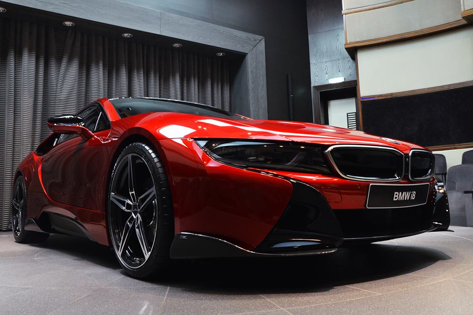 BMW i8, as you may know, comes only in a number of fairly dull colors. If you want something more vibrant you are going to have to go through the Individual program… or take a trip to Abu Dhabi. These guys are showing off another one of their custom Bimmers, this time a Lava Red BMW i8.