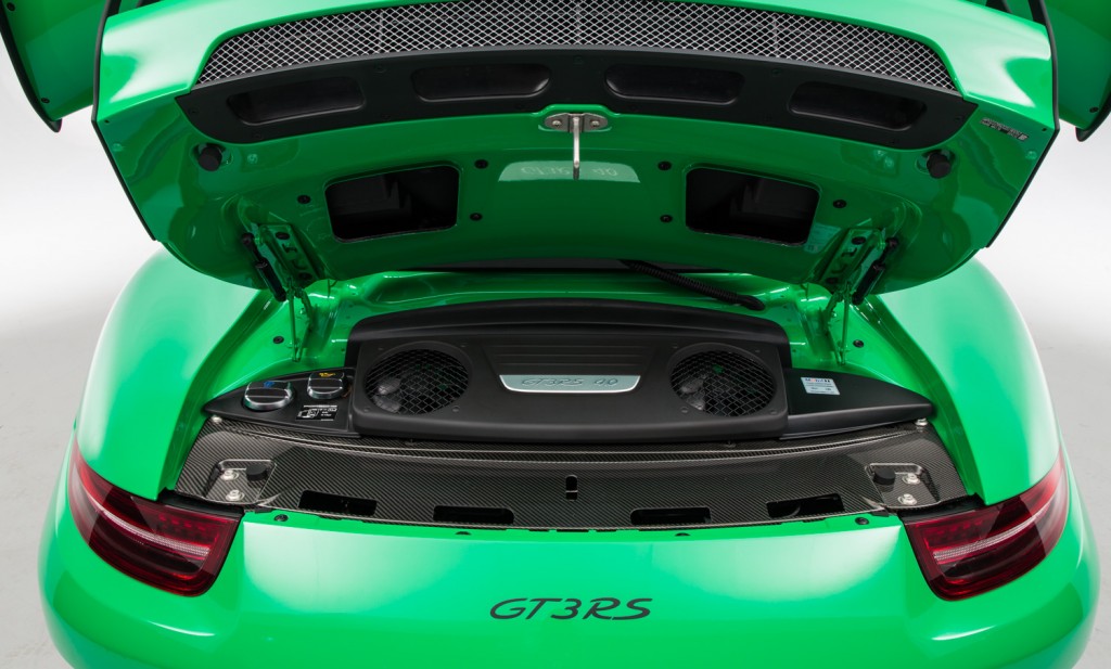 If you still think The Octane Collection is asking too much for this GT3 RS, here’s a list of the car’s standard kit: Paint To Sample – RS Green (2d8), Black leather interior with GT Silver accents, LED main headlights including Porsche Dynamic Light System (PDLS), Porsche Doppelkupplung (PDK), Sport Chrono Package incl. Porsche Track Precision App and preparation for laptrigger, Porsche Ceramic Composite Brake (PCCB), Lifting system front axle, 20-inch GT3 RS wheels, Full Bucket Seats, Automatically dimming mirrors with integrated rain sensor, Six-point seat belt for front passenger, Exclusive extended interior package with door panel in leather/alcantara, Interior Carbon, Porsche Communication Management (PCM) including navigation module, Porsche Vehicle Tracking System (VTS), Digital radio, Online Services, Mobile phone preparation, Sound Package Plus.