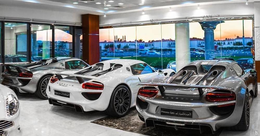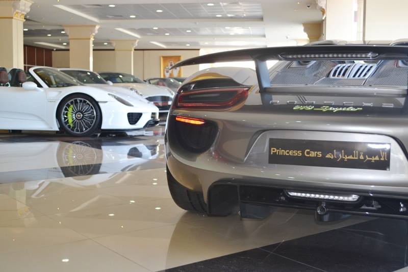 The owner of Princess Cars of Abu Dhabi, Adel Marzouqi, is fond of collecting exotic cars. And I don’t mean different makes and brands. The man likes having a whole bunch of the same car. Time was Adel had three Ferrari Enzos at his showroom, other time four Carrera GTs. And recently he repeated that feat with three Porsche 918 Spyders.