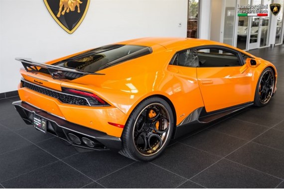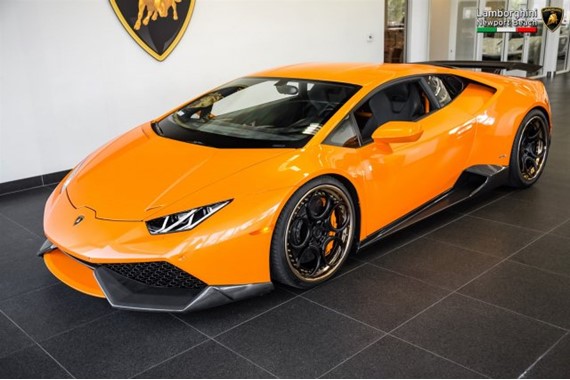 That’s a helluva lotta money, but then this supercharged Lamborghini Huracan is a helluva lotta car. Aside from the fact that this Arancio Borealis beauty with its Nero Ade leather is a 2015 model with only 1,266 on the clock, the car comes with a bespoke carbon fiber body kit consisting of front spoiler lip with side flaps, side skirts, custom rear diffuser and fixed rear wing. It is almost there to look like an Aventador SV.