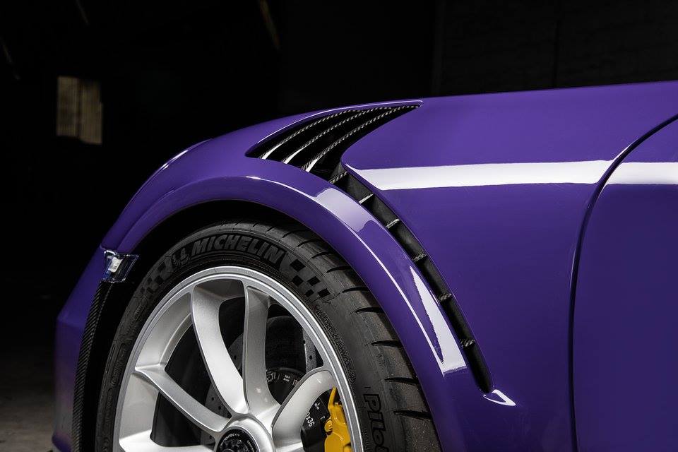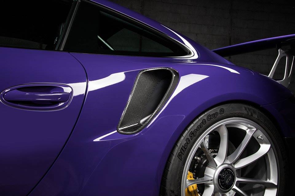 We would agree that even on a white car Techart GT3 RS Carbon Line package is now what you call prominent. In fact, it’s fairly subtle and obscure as it only replaces the black plasticy bits on the RS carbon fiber. And we’d grant you that this kit looks even more obscure on this Ultraviolet car. But we put it to you, that’s what makes it so cool. The less showy your kit looks, the classier it is.