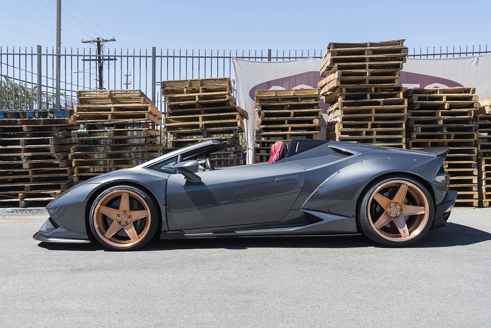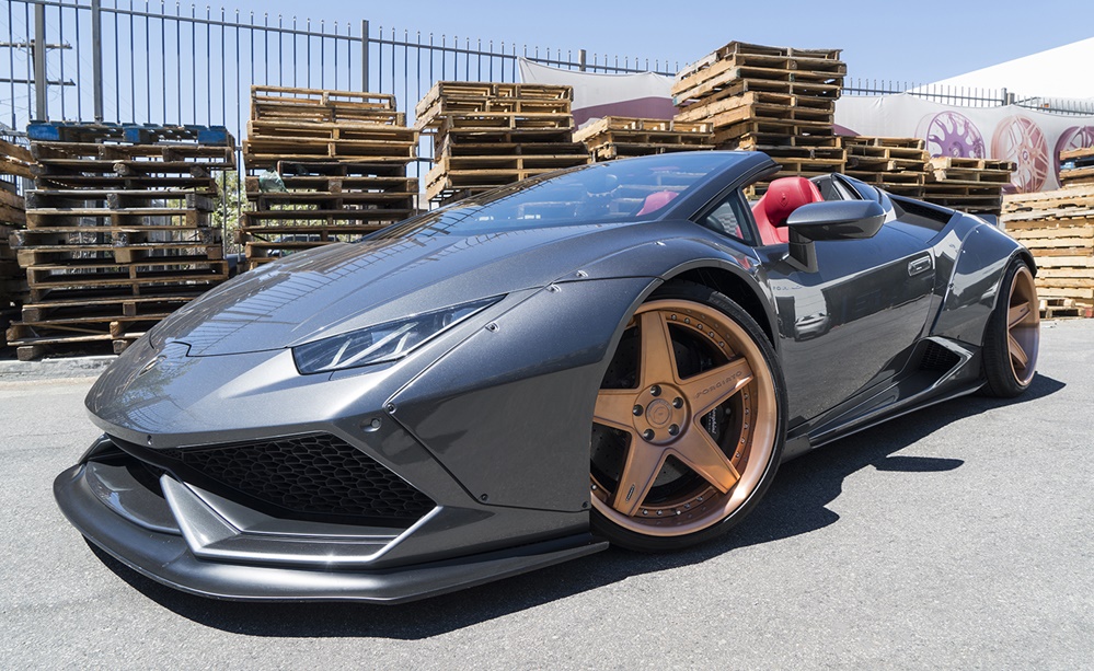 And that is why the one-of-a-kind Liberty Walk Huracan Spyder has now received a new set of wheels to make it even more eye-popping and neck-turning. As before, these wheels come from Forgiato. But whereas the first set was a dignified and sober design in black, the new concave 21-inch Forgiato Classico-ECL in copper finish are look-at-me beyond anything you’ve ever seen before. Not that that’s a bad thing. The whole purpose of this package, after all, is to make the Lamborghini Huracan Spyder more conspicuous.