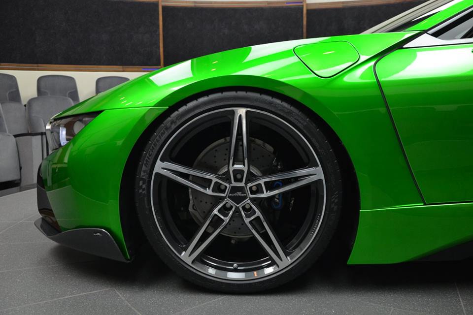 Even without help from aftermarket parts the Lava Green BMW i8 would have been one hell of an eye candy on account of that paint job alone. Maybe it’s because the car looks very stern and serious in a futuristic sort of way, but the i8 responds well to vibrant and vivid colors mainly because of the contrast factor. The liveliness of this shade of green is completely at odds with the character of the car, but that is exactly why it looks so awesome.
