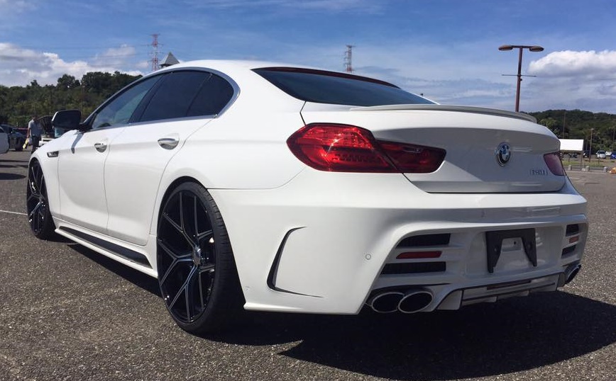 What Wald BMW 6 Series Gran Coupe is, is a handsome, sporty, and very exclusive-looking sports sedan that looks equally at home at a tuning show as it does parked in front of a classy restaurant. This one here is finished in white which kind of brings out all the lines and contours of the kit and make them pop, and it has been slammed on some huge wheels.
