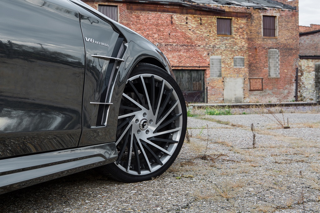 You could almost call Wald Mercedes S-Class Coupe styling kit a wide body affair, what with those custom front wings which feature massive gills on either side. But on the whole the kit is fairly restrained and the bumpers and skirts are not in-your-face at all. This particular Wald-S-Coupe is wrapped in a really cool black chrome which complements the kit with its gloss black accents nicely and also go well with the two-tone Forgiato Ventoso-ECL wheels.