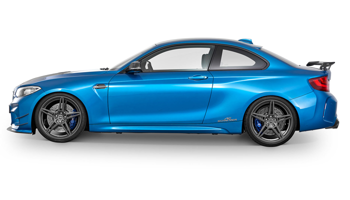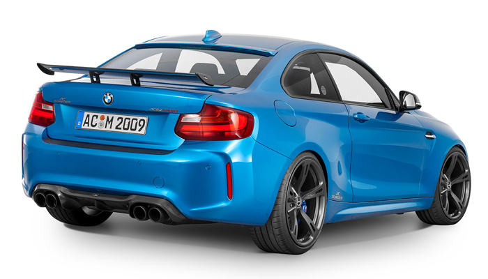As for the visual stuff, AC Schnitzer BMW M2 gets a body kit consisting of front splitter, carbon front side wings, carbon mirror cover, rear roof spoiler and rear wing, made from composite materials, such as PU Rim or carbon. For the inside you get special floor mats, fancy gear and handbrake knobs, and sport pedals.