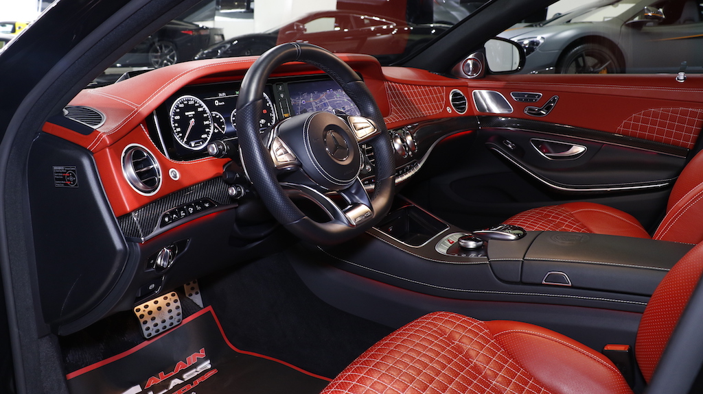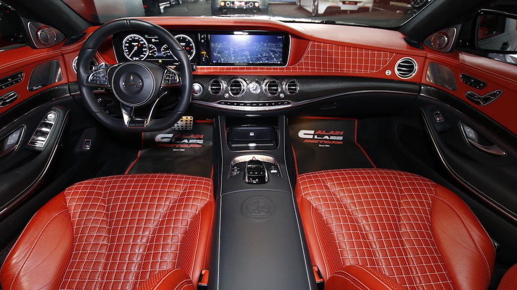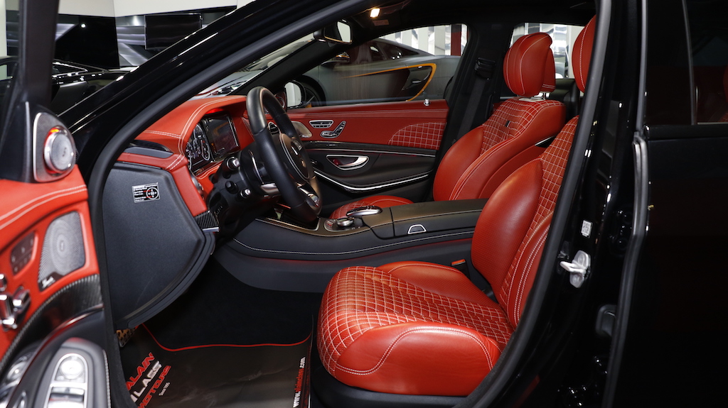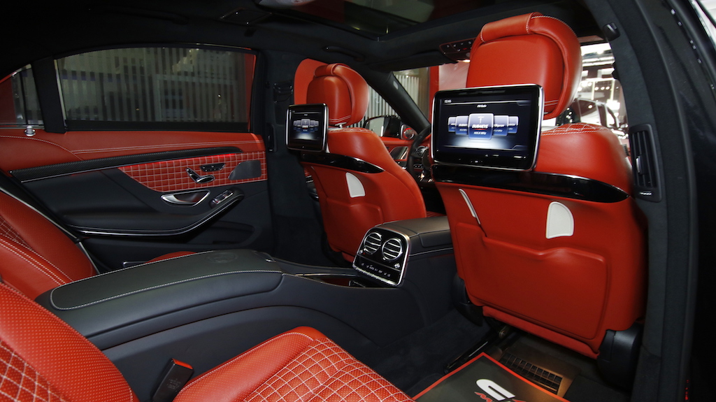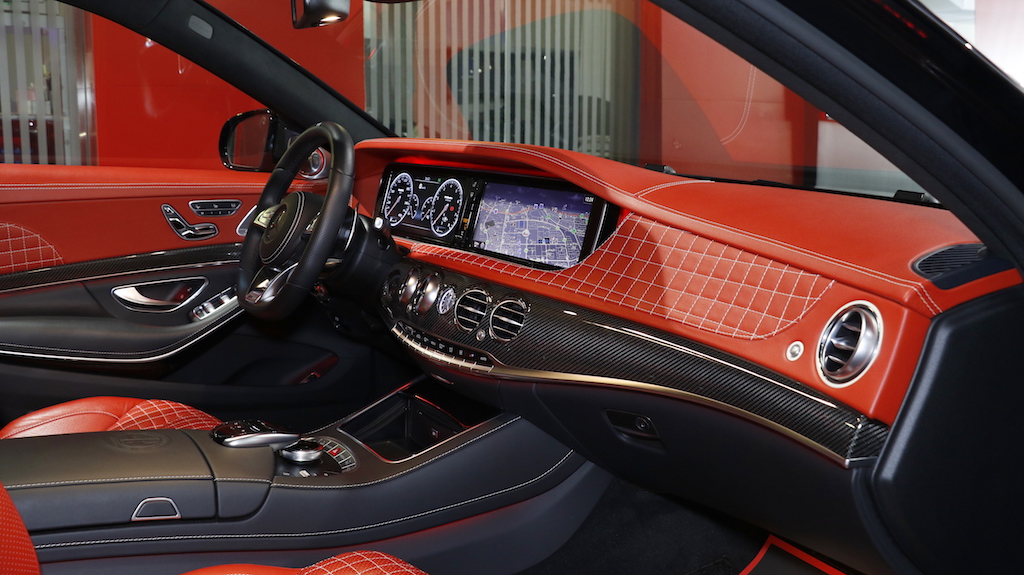 The interior of this car may be a tad too red for a lot of people, but there is no denying it look impressive, especially with all those white decorative stitching, carbon and Piano Black trim accents. As I’m sure you know from out previous pieces on this awesome machine, Brabus Mercedes S63 850 comes with a heavily tricked-out AMG V8 engine that develops 850 horsepower and so much torque, it has to be limited electronically or it’ll shred the gearbox to bits. The car also gets custom suspension, brakes, and control programs.