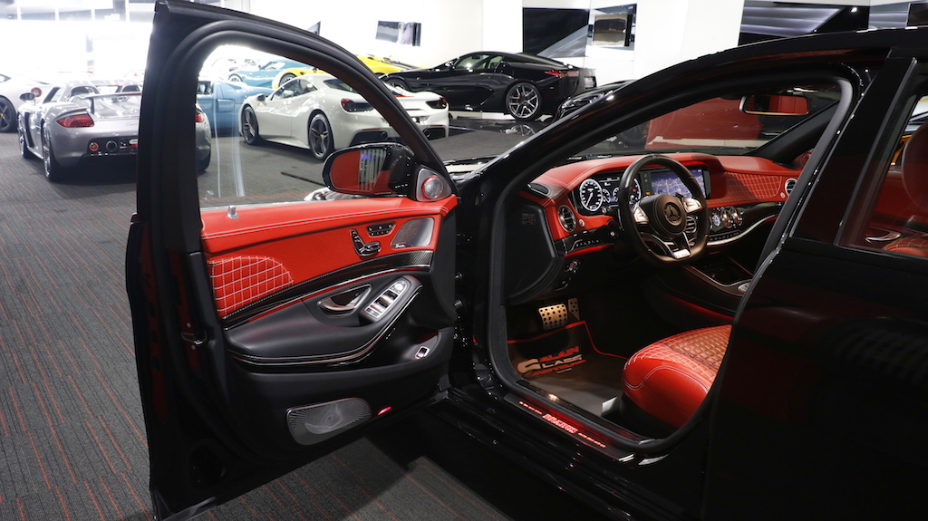 Boasting a full 850 package with engine, aero and wheels, this super special, super mean Brabus is a little bit cooler than the rest thanks to a number of little custom touches. For instance, the wheels on this Brabus Mercedes S63 850 come from the Rocket 900 model; it features clear coated carbon parts against its rich black paint job; and it has some rather sweet red accents that go really well with black and also match the interior.