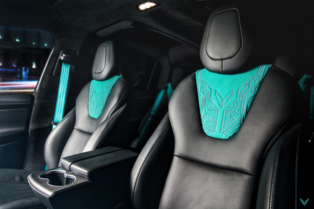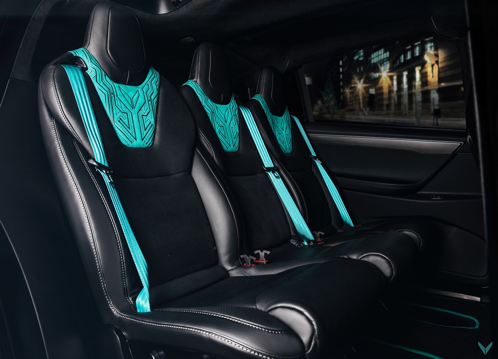 Vilner Tesla Model X uses turquoise as the main highlight of the interior because the tuner believes it is ‘the color of electricity’. This rather brash shade of blue/green is found on the seat belts and the edging of the carpets as well as the back of the seats, and they are complemented with circuit board pattern graphics embroidered onto the seats and parts of the dashboard. These may be a little on the nose, but hey, it’s their first crack at a car like this.