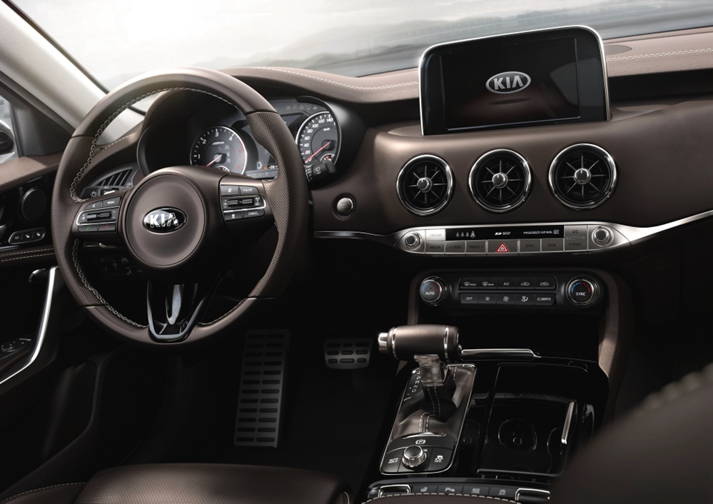 Among the main highlights of the 2018 Kia Stinger there are the electronic eight-speed automatic transmission, optional all-wheel-drive (RWD standard), Drive Mode Select, sport tuned chassis and suspension with Dynamic Stability Damping Control (DSDC), variable ratio rack-mounted motor driven power steering system (R-MDPS), available Brembo brakes, a very stingy design, a host of safety gear from Advanced Driver Assistance Systems (ADAS) to Driver Attention Alert (DAA), height-adjustable Head-Up Display (HUD), 7.0 and 8.0-inch touchscreen infotainment system, and available 720-watt, 15-speaker Harman-Kardon sounds system.