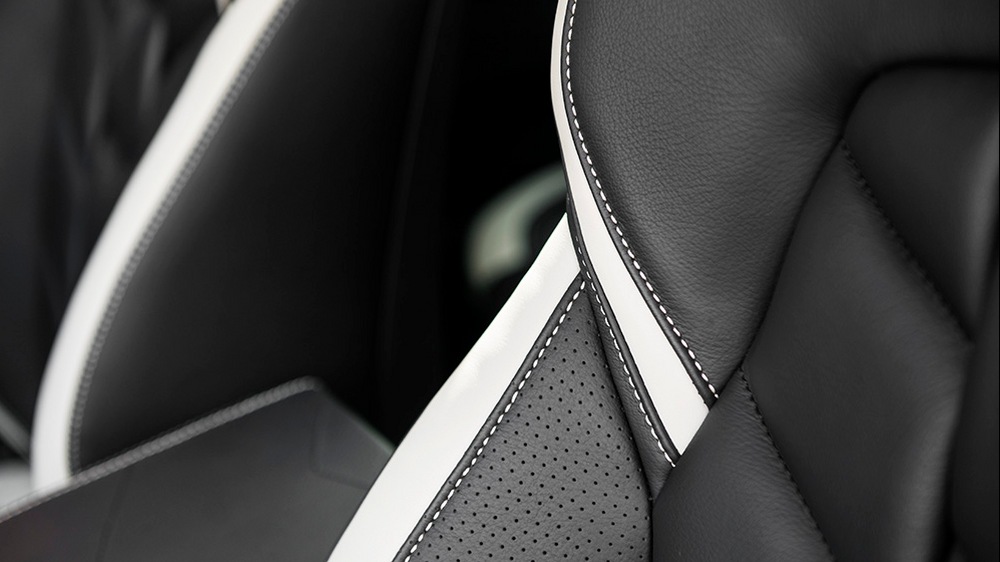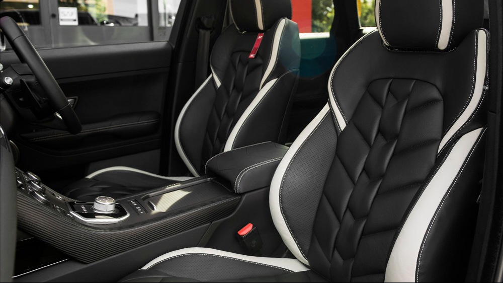 As for the interior, Range Rover Evoque Convertible Phoenix benefits from Herringbone leather upholstery, in black with white edging and contrasting stitching, for the seats as well as dashboard, door armrests and centre glovebox, also trimmed with quilted and perforated leather and complemented with contrasting stitching, alcantara inserts on the instrument binnacle, Piano Blakc accents and trims, stainless steel door sill plates and posh carpet floor mats.