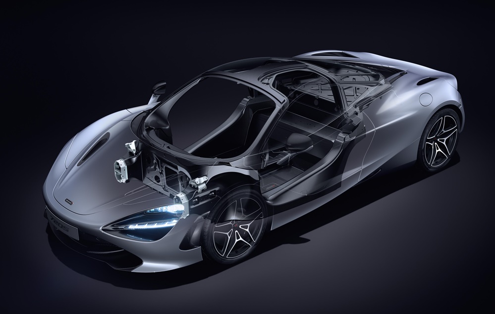 With 720 PS and 770 Nm of torque from the new engine, McLaren 720S is capable of sprinting from 0 to 60mph in 2.8 seconds (0-100km/h 2.9 seconds), from 0 to 200km/h (124mph) in 7.8 seconds, and eventually to a maximum speed of 212mph (341km/h). Good job, then, that it has brake powerful enough that they can bring it back from 200 km/h to standstill in 4.6 seconds while covering 117m. Part of that is technology, and part good old lightness. With a carbon fibre chassis based around Monocage II central structure the 720S weighs only 1,283kg dry.