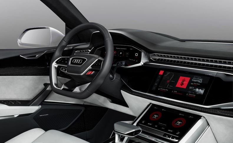 The Android infotainment in Audi Q8 Sport Concept offers apps such as streaming service Spotify, Google Play Music and Google Assistant, plus Google Maps which could replace Audi’s own navigation system. Of course, all of these are available on your phone, but the beauty of this system is that it integrates all these online services into the car’s MMI system which means you cna use them driecly from the touch display in the center of the dashboard. Now this could prove a little distracting constantly fondling your screen as you drive along, but hey, this is what people want right now.