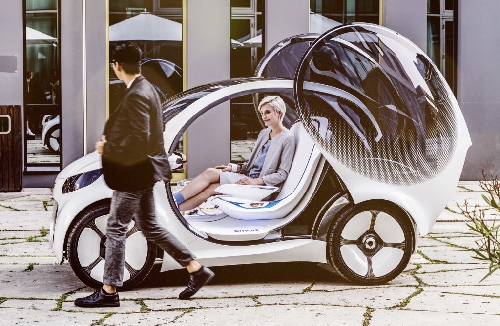 smart vision EQ fortwo is basically an autonomous pod that accommodates up to two adults in relative comfort as they hop around the town doing work or being social. The car, if you can call it that, is also fully connected and can arrange meetings for you or suggest places to go. And best of all, it is shareable based on the car2go concept, which is great for traffic and pollution and everything, but robs you of the privacy and freedom and security of a personal car. In essence, this is just a fancy taxi with no annoying driver trying to make small talk all the time.