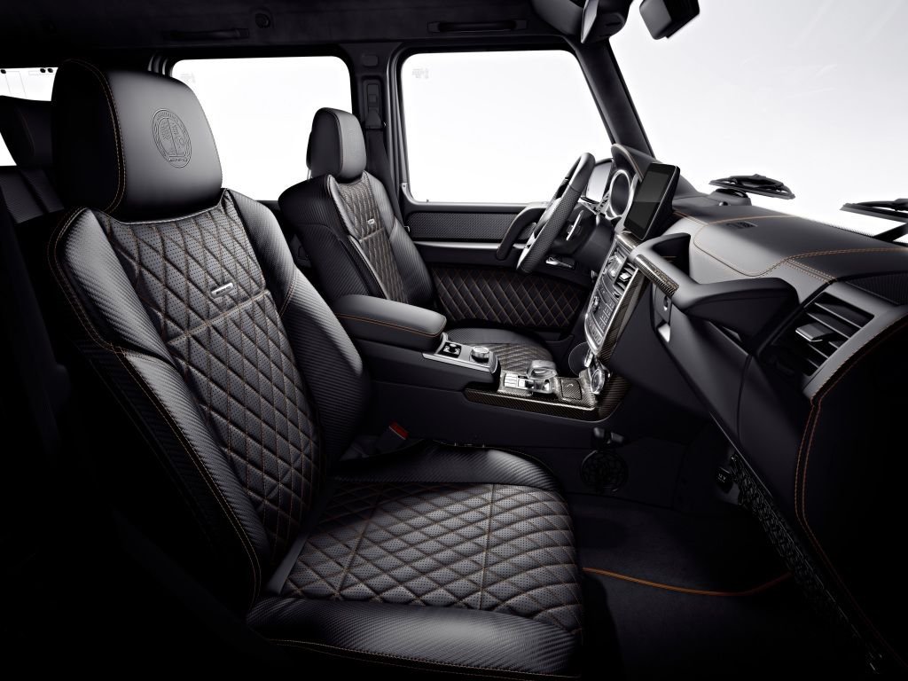 As for the inside, designo Exclusive package in designo black nappa leather with seat side bolsters in a carbon-fibre look and topstitching in light brown is the first thing you notice. Then you find the decorative stitching in bronze, the milled Edition lettering in the grab handle plus floor mats with leather edging in light brown and topstitching in black. Special mention has to made of the AMG Performance steering wheel in black nappa leather featuring a flattened bottom.