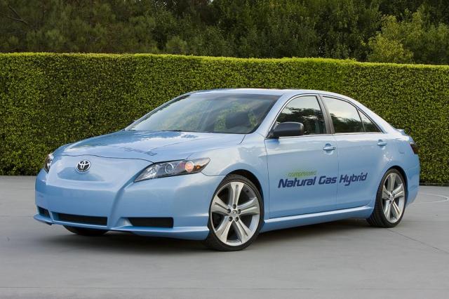 Toyota has prepared a very eco-friendly vehicle for L.A auto show, This Camry actually runs on natural Gas, along with a hybrid system. So too much economy here! CNG is one of the acceptable options to replace gasoline and diesel in engines, since it is much much cleaner, and there are alot if it available and it’s much easier to produce as well. But its serious drawback is performance, and it is so bad in this sense that no big company actually consider CNG as a viable option. Of course Toyota’s Concept with hybrid CNG system has a long way to actually become a mass produced solution, but take into account that Toyota never does stupid things, so we might hear more about this car in future.
