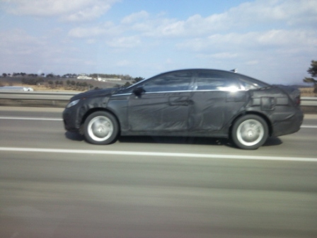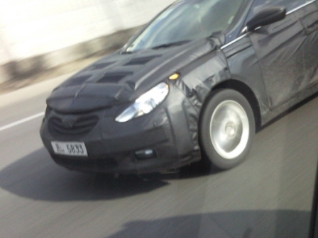 The new 2010 Hyundai Sonata is in the works and as you see here it’s doing road tests. Apparently, new Sonata will be a coupe styled 4-door saloon like Mercedes CLS which seems like a tall order for a brand like Hyundai, nevertheless they have shown with Genesis that they got the guts to make ground-braking cars! Also next generation Sonata may spawn an estate variant. Hyundai has been developing a lot of new techs recently like the 8speed gearbox or new diesel engines which all will be featured in Sonata along with Hyundai’s first ever gasoline electric hybrid system. A debut is expected in Spring 2010. Check out the pictures after the jump…