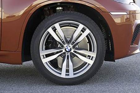 The BMW X5 M and the BMW X6 M are the only vehicles of their type equipped with staggered-size tires front and rear, running on 20-inch light-alloy wheels. The choice of runflat tires in sizes 275/40 R 20 at the front and 315/35 R 20 at the rear is a result of the special setup of both models, with the emphasis on rear-wheel power and dynamic handling balance. This promotes exceptionally good transmission of power to the rear axle and precise, razor-sharp steering behavior of both models. Transitional stability is also world-class.