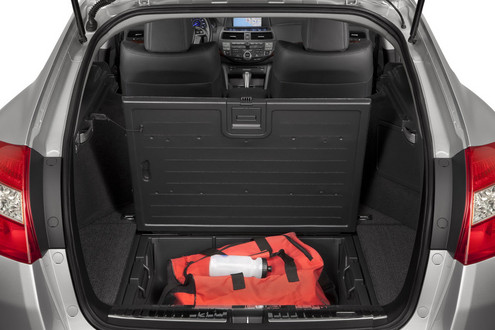 Crosstour can carry around 5 passengers with lots of luggage. Despite the curvatious shape of the body, it actually has a good loading bay and is also fitted with other storage areas inside the cabin. For example there is an innovative 8-inch deep under-floor Hidden Removable Utility Box with a reversible lid, featuring both plush-carpeted and durable-plastic sides. The back also can be folded for the sake of more cargo space.