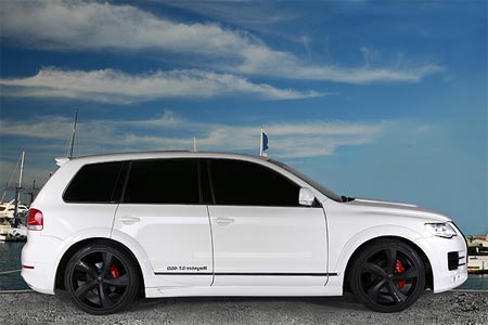 Apart from the massively flared wheel arches, this wide body Touareg also has new rocker panels and a power dome on the hood, all reflecting on the great amount of power in its heart. It sports 9Jx20 wheels at front and 10Jx22 at the rear.