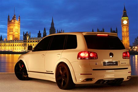 The giant 12-cylinder VW Touareg has been given a wide body treatment by tuner Hofele Design. Called the Royster GT 460, the word GT really suits it because well, it’s no more a SUV! It has ground clearance of a sportscar and is fitted with 22-inch wheels wrapped with high performance street tires. Now you have a 480 hp high-riding Grand Tourer!