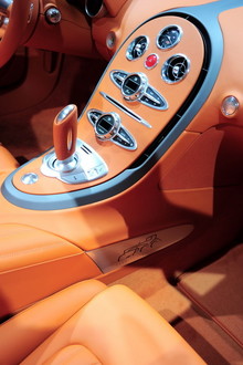 Soleil de Nuit – Sun of the Night: is another stunning example of how a modern interpretation of Bugatti’s core values “Art, Forme, Technique”: A very unusual colour/material split characterizes the “Soleil de Nuit”, the second Middle East one-off model created for the Dubai Motor Show. The horizontal split in the lower part of the car – a synthesis of polished Aluminium, painted Black Blue Metallic enriched by mirror shine meshes – softens the lines of this Grand Sport and gives the body a new touch of sportiness. Blue Metallic in the upper body parts and also in the inner side of the (“Sang Noir”) rims, the outer side of which are in diamond cut, underline the exquisite appearance of this dramatic looking car. A strong burnt orange interior crowns the attractiveness of this impressive “Soleil de Nuit”.