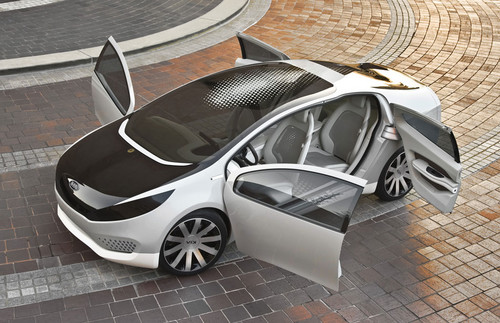 As promised Kia Motors revealed their new concept car at the 2010 Chicago Autoshow. The Ray is a plugin hybrid model and designwise it might seem a bit unfortunate, but the main reason it’s been developed it to showcase the company’s fuel-stretching and emissions-cutting technologies. It’s built on Kia Forte’s platform and hints at their future compact sedans.