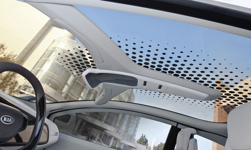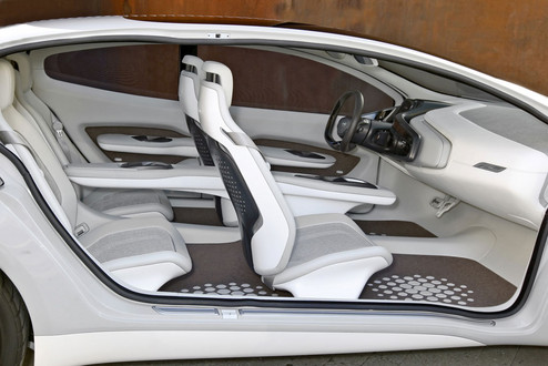Front and rear seats made of light-weight composites, mounted on the side sills, create a floating effect in the cabin and utilize elastomeric materials to support body weight. It also has a lightweight touch screen instrument layout and a green Infinity Audio system with special loudspeakers which use 50 percent less energy!