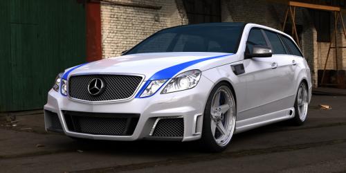 GWA-Tuning is a new name in the business, but the first project they’re presenting is a rather interesting one. It’s a full body kit for the new Mercedes E63 AMG Station Wagon, consisting of modified bumpers, spoiler lip, side skirts, carbon side vents, roof wing, huge rear diffuser and a pair of twin mufflers. The best part of it however, is the new front grille which looks really good.