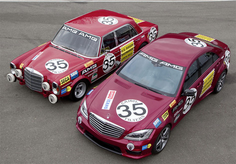 Like its historic predecessor, the new S 63 AMG showcar does not fail to attract attention. Eye-catching details include the imposing tyre sizes of 275/35 R 20 and 325/30 R 20 at the front/rear, and the 4.5 cm flare on each wing. The start number 35 and practically all the sponsoring stickers follow the original. Instead of fire-red non-metallic paintwork, the body of the showcar is finished in “AMG Le Mans red metallic”, a colour available exclusively for the new SLS AMG. The functional interior is enhanced with black/carbon-fibre piano lacquer trim. A rollover cage, two AMG sports bucket seats with four-point seat belts and an AMG sports steering wheel lined in leather/Alcantara underline the racing touring car look. This spectacular showcar provides an outlook on the series production version of the new S 63 AMG, which is due to be launched in September 2010.