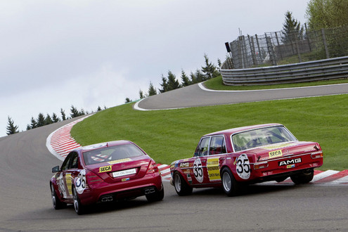 The red four-door saloon already showed its potential in training, when Clemens Schickentanz surprised everyone with the fifth-fastest training time. Indeed nobody at AMG had expected fifth place in a starting line-up of 60 cars. 80,000 spectators wondered about the fast, red saloon with its long wheelbase – the only Mercedes taking part in the race. Pole position was occupied by the favourite, the Chevrolet Camaro driven by Ivo Grauls and Peter Hoffmann, followed by the Alpina-BMW 2800 CS of Niki Lauda/Gérard Larousse, then the first works Ford Capri with Dieter Glemser and Alex Soler-Roig, and the Schnitzer-BMW 2800 CS piloted by Rauno Aaltonen and Helmut Kelleners. All in all, 60 racing touring cars were seeking to beat the stopwatch on the then 14.1 kilometre course in the Ardennes, driven by well-known names such as Hans-Joachim-Stuck, Jochen Mass, Toine Hezemans, Willy Kauhsen, Achim Warmbold and Rainer Braun.