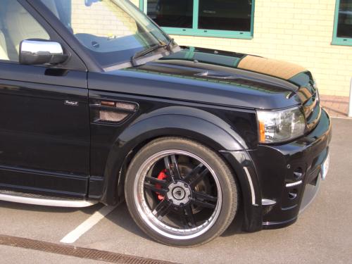 The British car tuners at Prestige have released a new styling kit for the 2010 Range Rover Sport. Giving the Sport more road presents. Prestige have added several aerodynamic parts to the Range Rover. The front received a new bumper with integrated fog lights and LED day running lights and larger central air intakes. Wider fenders complete the wheel arches and add a much more aggressive look. Extra air intakes were designed in the new side skirts which give the appearance of a lower ride height. In the rear of the Range Rover Sport, Prestige installed a new bumper retaining the OE rear reflectors with a custom lower section to fit the exhaust pipes and a towing cover.