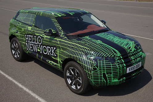 Usually prototypes are disguised for discretion, but these ten are supposed to be seen. The funky camouflage imagery is actually a GPS mapping trail of ten key cities for Evoque, with each vehicle saying ‘Hello’ to its city. It signals the eagerly awaited global launch of the new Evoque.