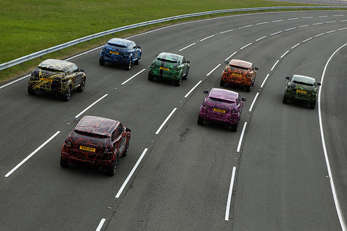 The new Range Rover Evoque is doing its final-phase real-world testing, and the company decided to also use this to publicize the car and tease people. So they’ve set up a world tour in which more than 17,000 individual tests will be completed on the car. Of course they are not going to promote the car in Kabul or Baghdad, instead the funky camouflaged cars will visit London, New York, Sau Paulo, Paris, Milan, Madrid, Berlin, Sydney, Shanghai and Moscow during the program,