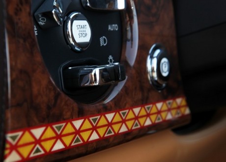 The inlay and marquetry inside this car are inspired by Arabian camel harness and are hand-crafted at Rolls-Royce’s Goodwood plant. At Goodwood, attention to detail is paramount; as such the marquetry for the Phantom was made using individually cut pieces of coloured veneer and hand assembled, using tweezers to ensure maximum precision.