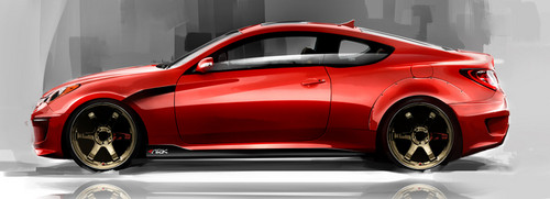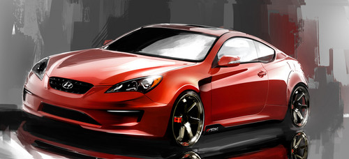 This time Hyundai has partnered with a domestic company called ARK Performance to create one special Genesis Coupe for 2010 SEMA show. The outcome will be this car you see some sketched of here. It’s called the ARK Track Time Attack Genesis Coupe 3.8L and it’s set to deliver at least 450 horsepower. You have to say though, the visual modifications seem a bit too discrete for that kind of performance!