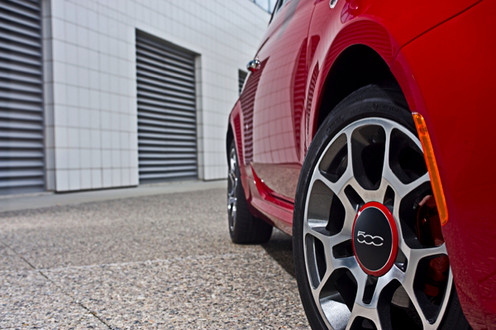 Fiat 500 Sport features athletically styled front and rear fascias with a larger grille and flared aerodynamic treatment. Between its unique 16-inch aluminum wheels with Mineral Gray painted pockets, the Cinquecento incorporates new body-side sill cladding for an enhanced sport appearance.