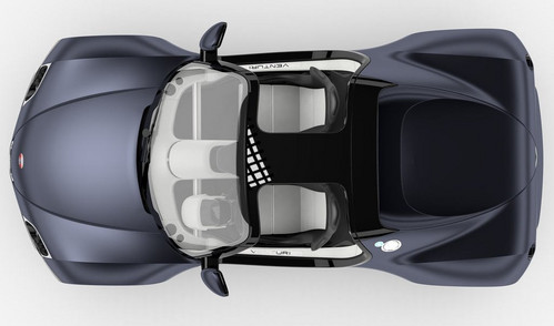 The car features a carbon monocoque structure for rigidity and has a body with two deformable cells positioned at the front and rear of the vehicle. This concept guarantees the security of the battery pack in the event of an accident and provides a level of safety never before attained in an electric car.