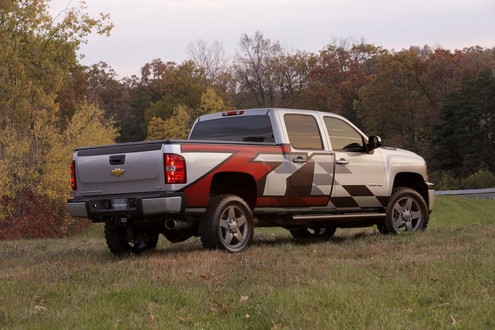 Chevrolet’s booth at the 2010 SEMA show is not just full of Camaros and Corvettes, they’ve found some room to show this Silverado 2500 Z71 pickup truck. This accessorized 2500HD Extended Cab Z71 features the new 6.6L Duramax turbo-diesel engine Allison 1000 six-speed automatic transmission and gets special visual tweaks.