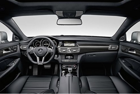 Mercedes says the design of the new CLS63 is inspired by the SLS. The CLS63 AMG is differentiated from the other CLS variants by a unique hood, wider fenders featuring the “V8 BITURBO” logo and an exclusive AMG front skirt with a black-painted cross-brace. Distinguishing features on the rear end include the diffuser insert, the AMG spoiler on the trunk lid, the AMG sports exhaust with two chromed dual tailpipes, as well as the integrated fog lamps also familiar from the SLS AMG.