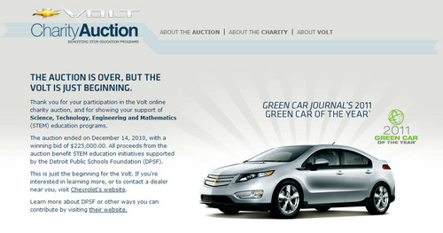 Recently Nissan delivered the first example of the electric LEAF to its customer in California and created a big fuss about it. Meanwhile General Motors decided to do a more noble thing with the first ever production Chevrolet Volt and auction it off for charity. The online auction is now over and the winning bid is $225,000.