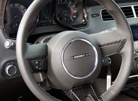 *Carbon fiber-finish dashboard trim, steering wheel trim, and center console accents