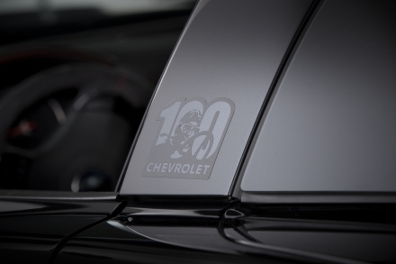 The main highlight of this package however is a graphic logo featuring an iconic image of Louis Chevrolet appears on the B-pillars, the center caps of the wheels, and the center of the steering wheel. The seat headrests also carry an embossed centennial logo, while Corvette’s crossed flags badge contains a small adaptation, with “100” in place of the traditional fleur-de-lis symbol, only for the Centennial Edition.