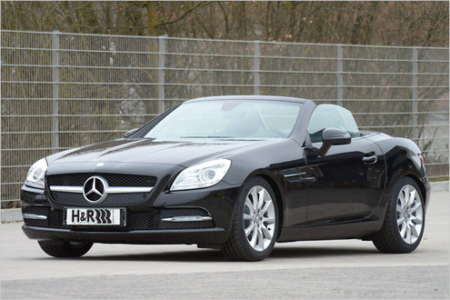 With every new car you can be sure that H&R provides you with a professional suspension kit that improves the looks and handling. They just announced a package for 2011 Mercedes SLK which is fully compatible with the car’s standard adaptive suspension system and lowers it by 25 mm. The kit costs only 273 Euro, and as always they offer bespoke wheel spacers as well.